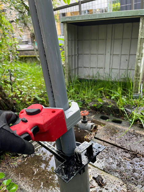 パイプが地下へ落ちないよう、金具でしっかり固定します。