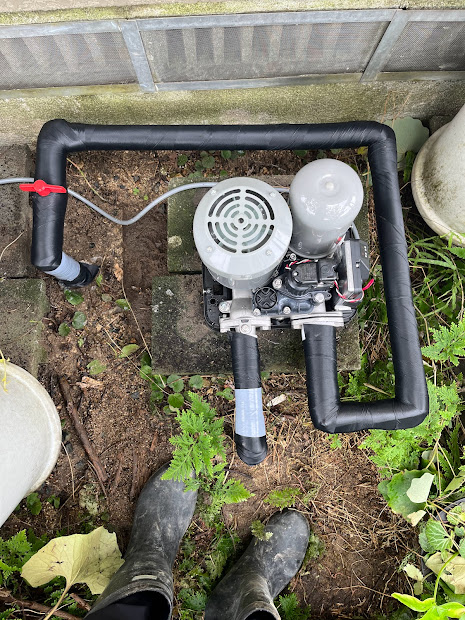 なんか、このポンプを取り付けるときは中古だったらしくて、安かったからお願いしたけど、カバーもバルブもないのね